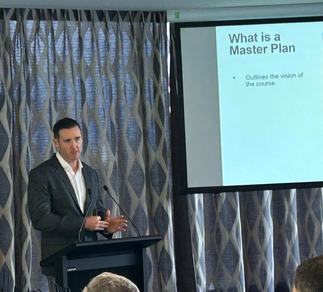 Brad Revill presented at the New Zealand Golf Industry Conference in Auckland on “The Importance of a Course Master Plan”, focusing on how long-term planning supports both conditioning goals and financial sustainability.