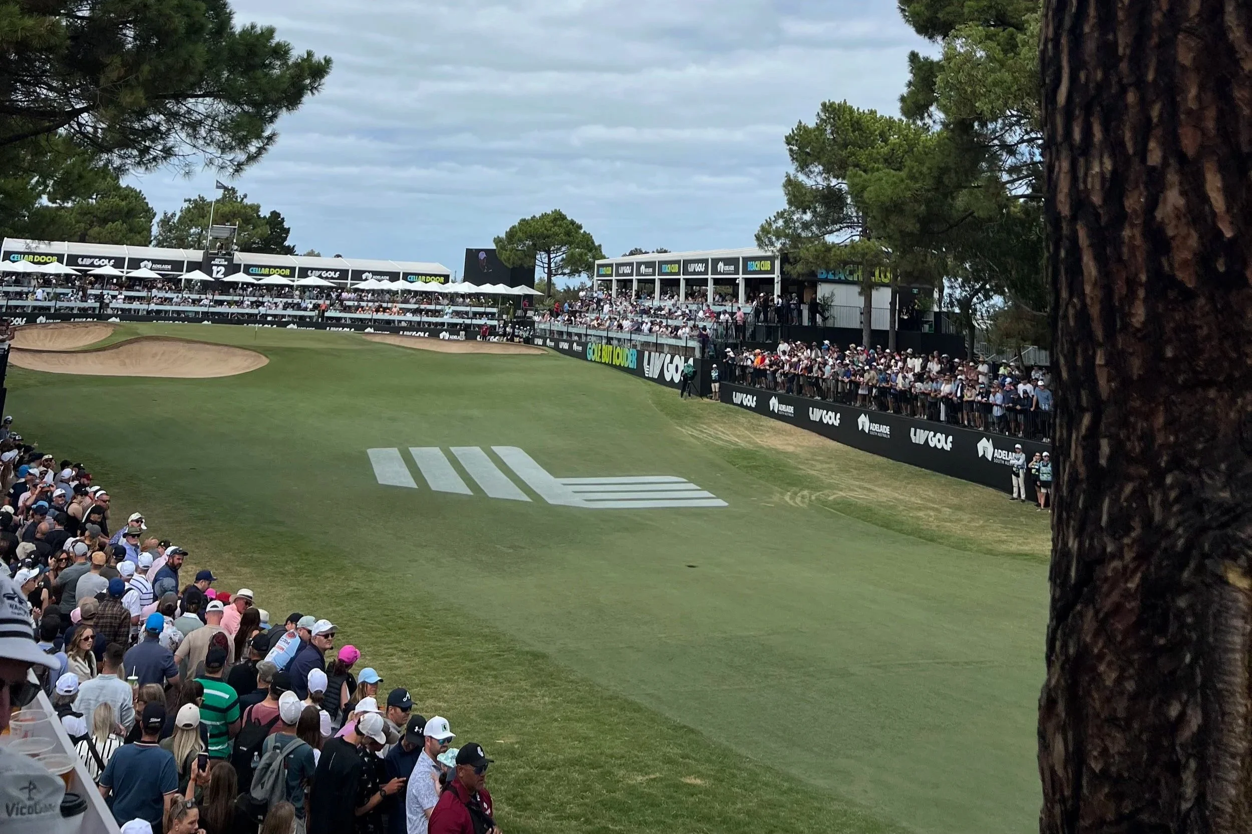 The famous “Watering Hole” during the 2025 LIV Adelaide event at The Grange Golf Club.